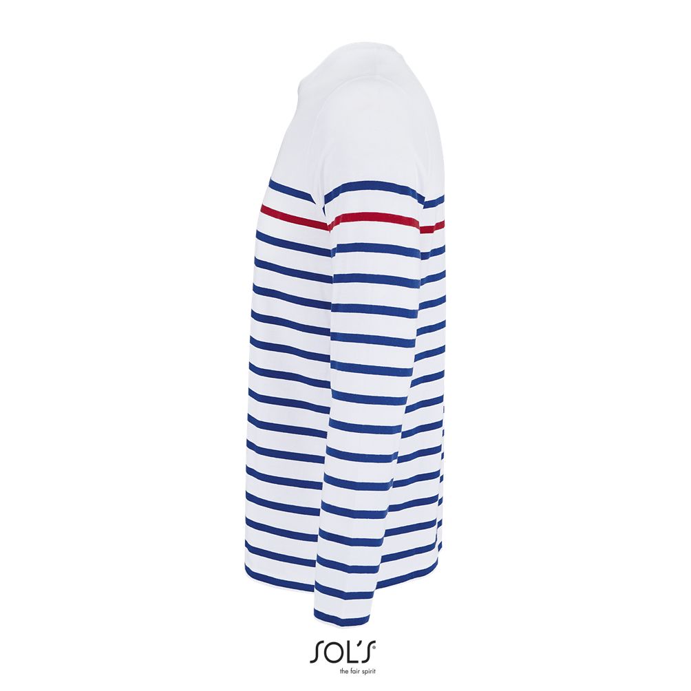 Cuello redondo – Corte recto – Cortado y cosido – Rayas aplicadas Esta camiseta marinera es una prenda emblemática del vestuario que ofrece comodidad y estilo.