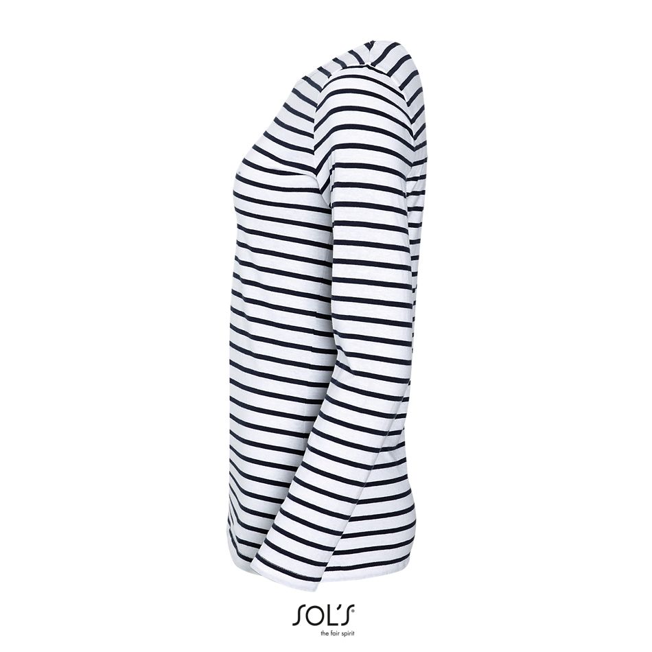 Cuello redondo – Cortada y cosida – Detalles Chambray en el cuello Prenda eterna, clásica y siempre a la moda, con sus calidades excelentes: el algodón peinado y las rayas tejidas.