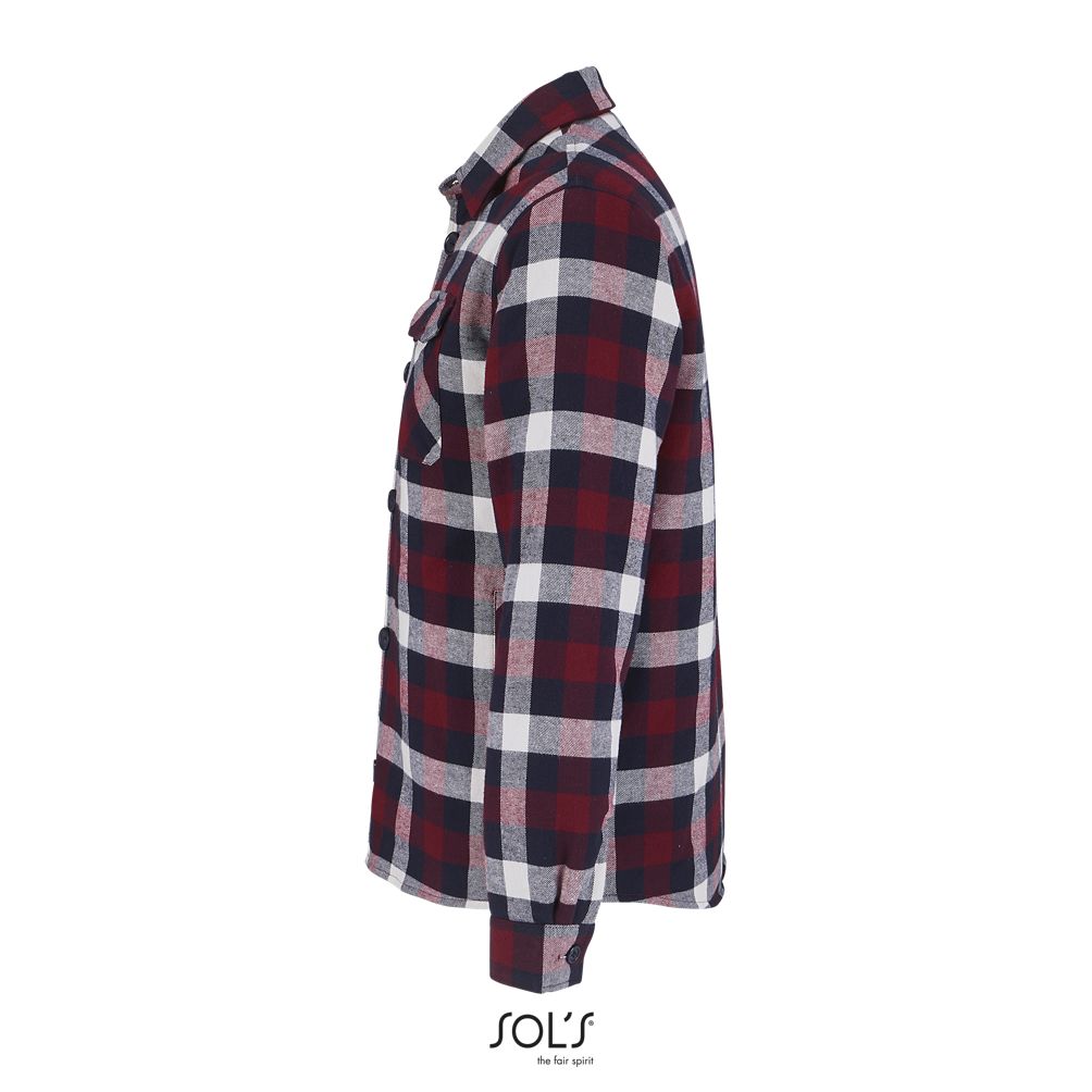 Existe en 3 diseños a cuadros diferentes – Abertura principal abotonada – Cuello camisa – Bolsillos laterales – 2 bolsillos de parche en el pecho, abotonados – Puños abotonados con una abertura – Bolsillo interior en el pecho en el lado del corazón con cierre Velcro – Forro acolchado – Cremallera interior bajo del dorso para la personalización – Dorso alargado y corte cómodo