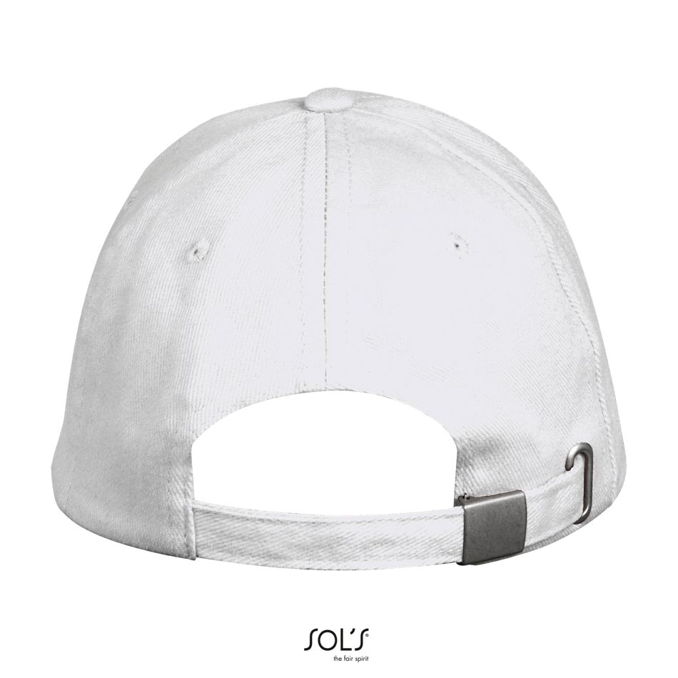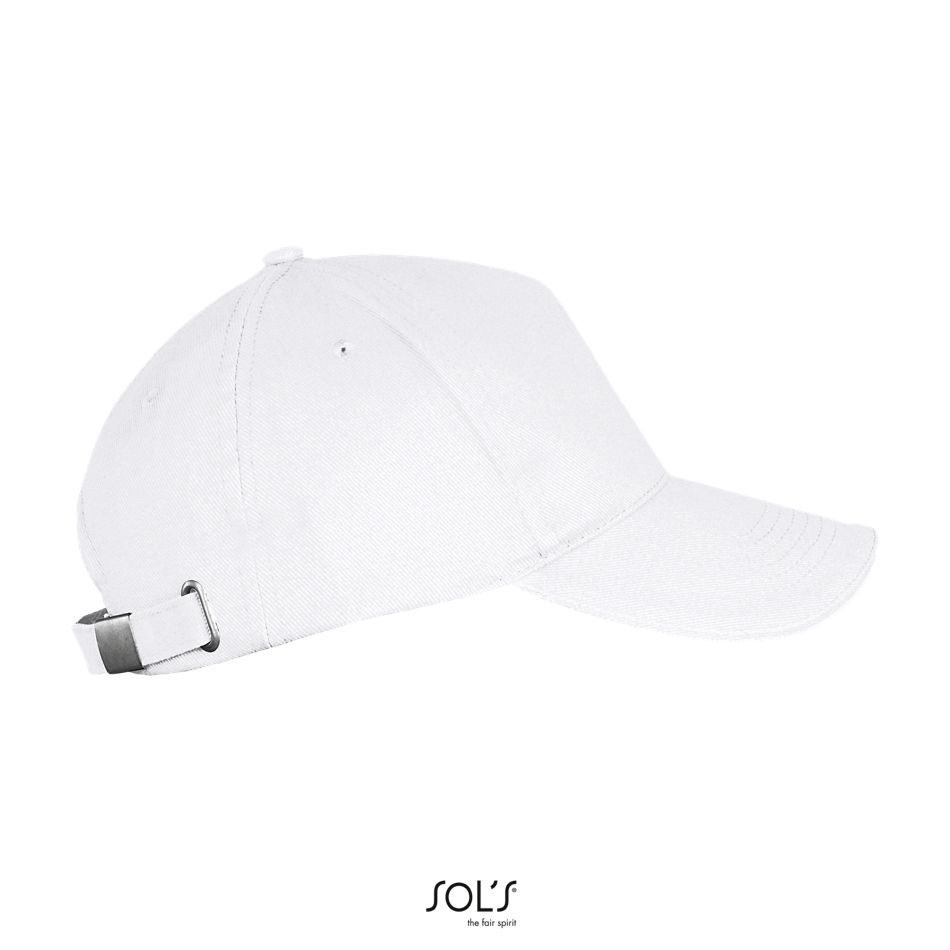 5 paneles – Visera preformada – 4 agujeros de ventilación bordados – Cierre trasero regulable con hebilla metálica Amplia zona de personalización – Excelente calidad de algodón pesado peinado – Destinado para cualquier tipo de mercado