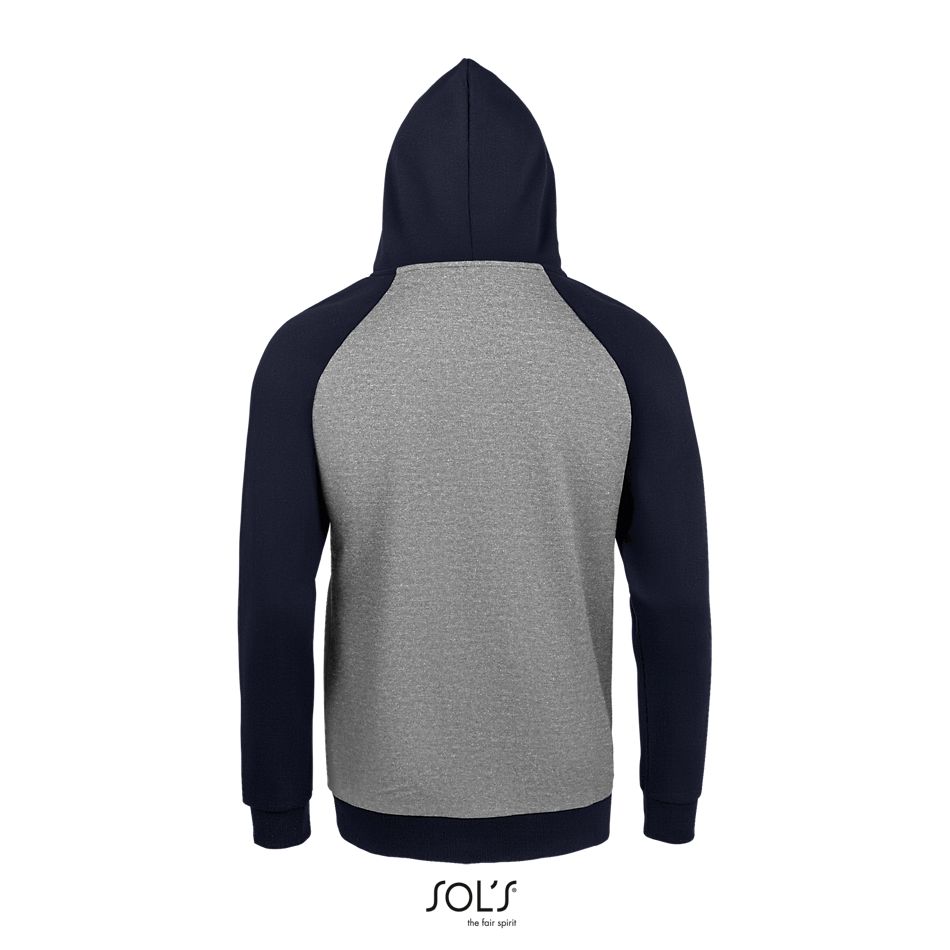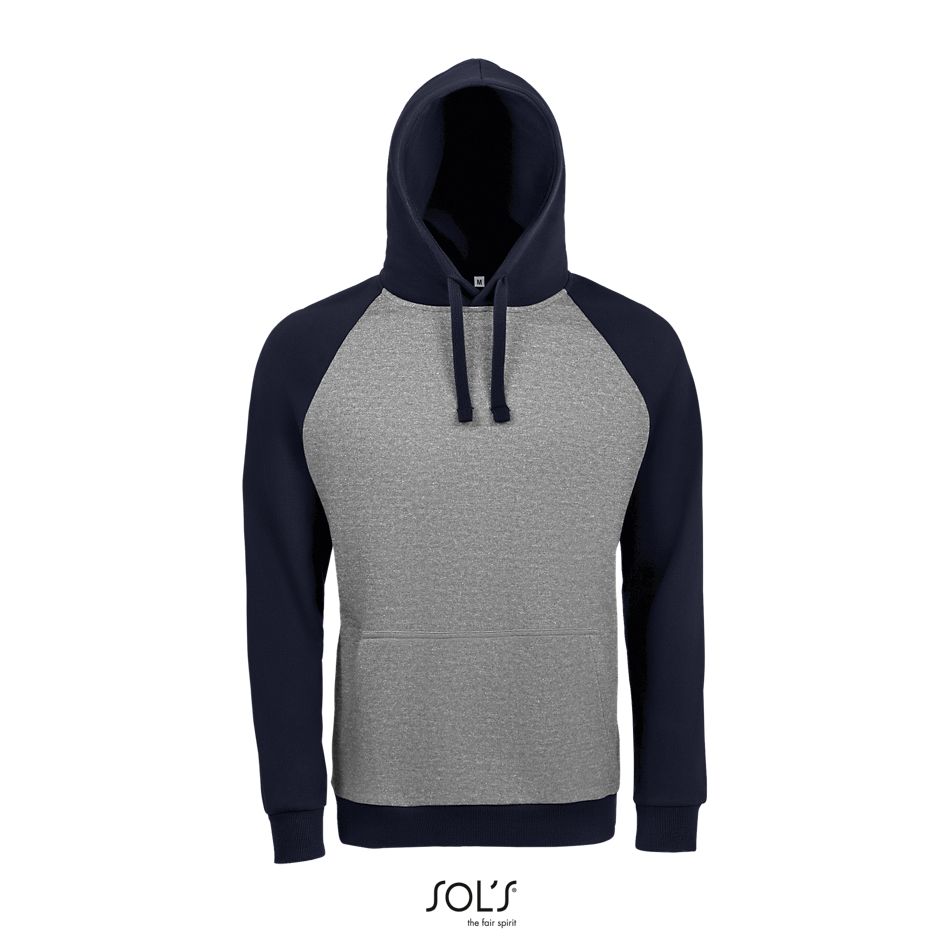 Bicolor – Mangas raglán – Bolsillo canguro – Acabado de canalé en los puños y en el bajo – Capucha forrada y ajustable mediante cordón de ajuste – Tapacosturas en el interior del cuello – Cortado y cosido